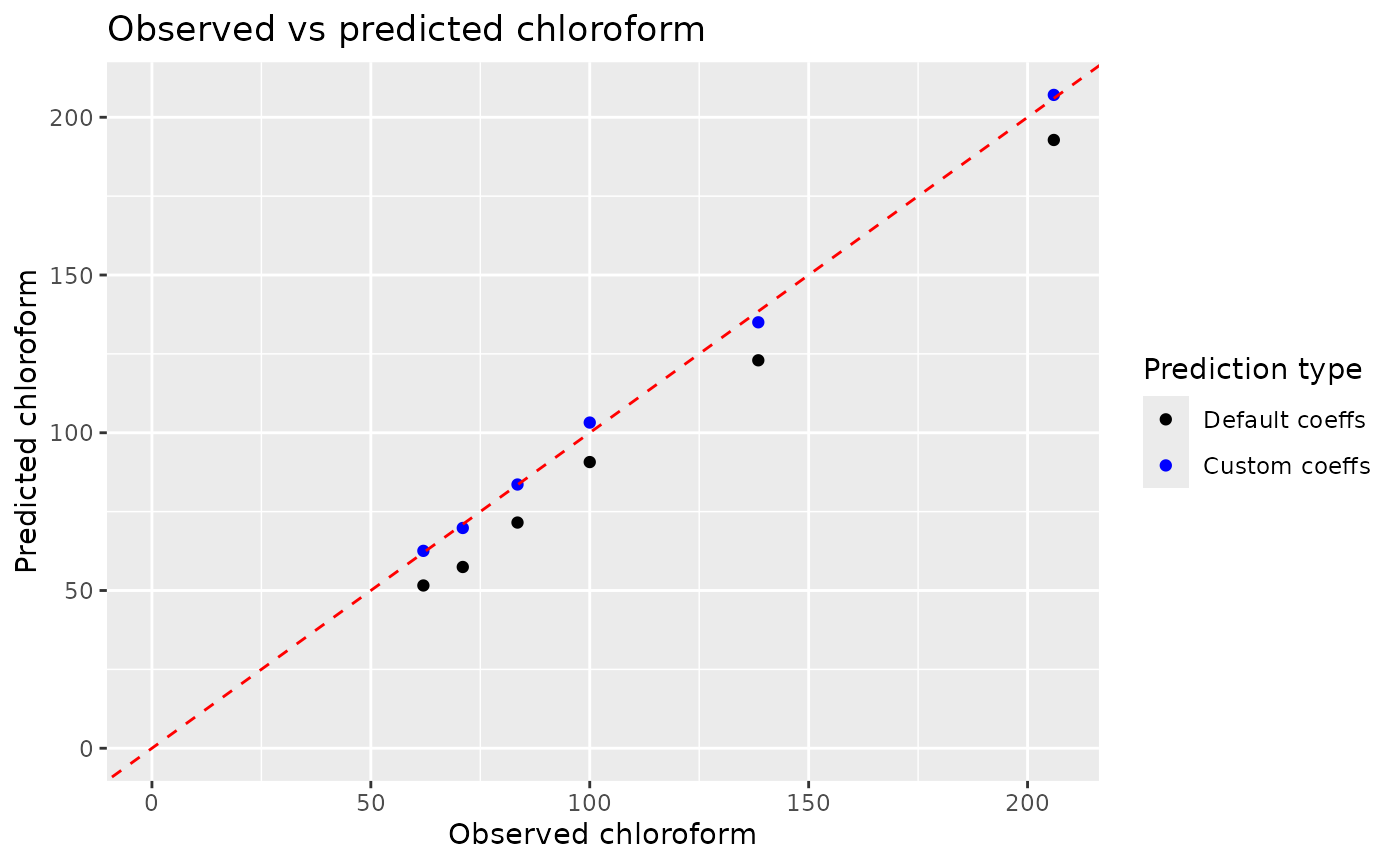 geom_point(data = dbp_data, aes(x = fin_chcl3, y = coeff_disinfected_chcl3, color = "Custom coeffs")) +